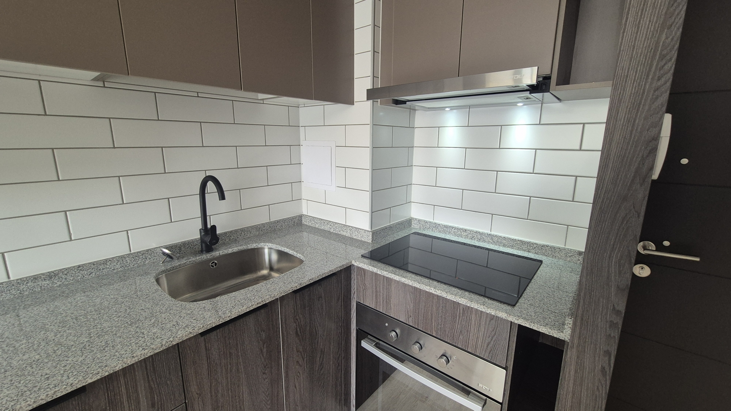 – Cocina americana con encimera eléctrica.-