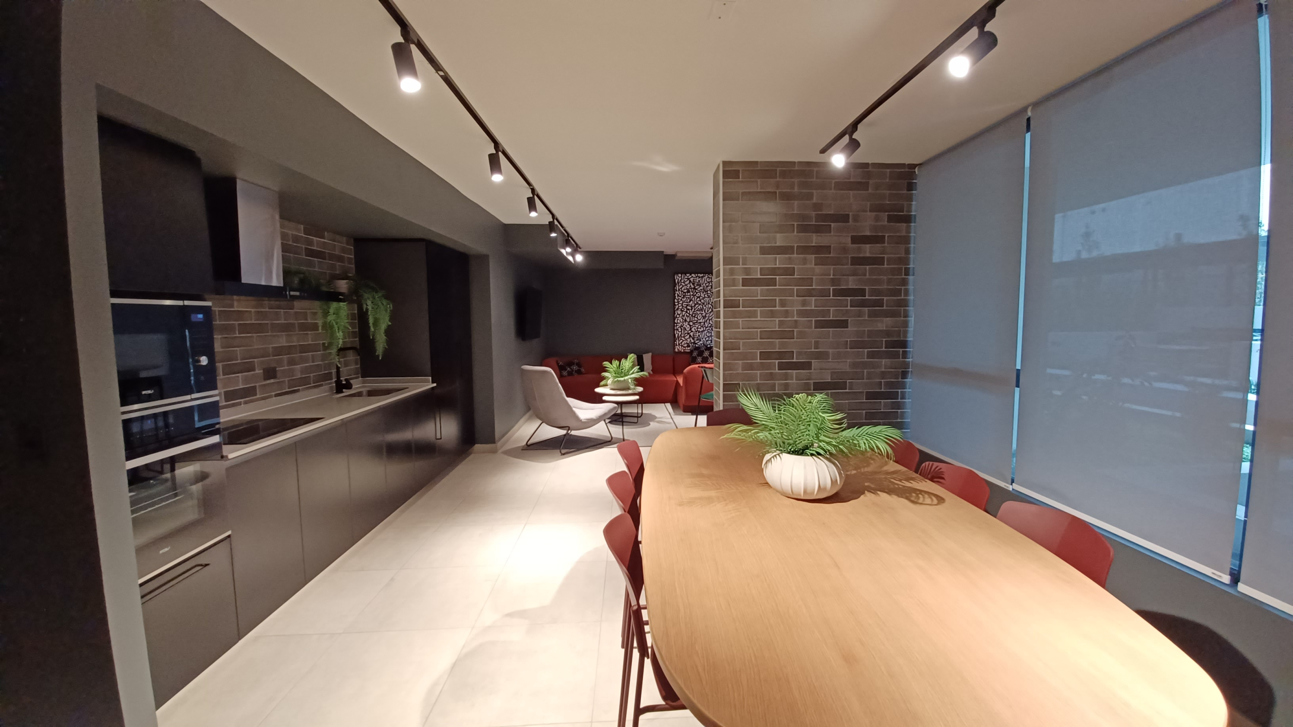 Cocina con encimera, refrigerador, horno, etc