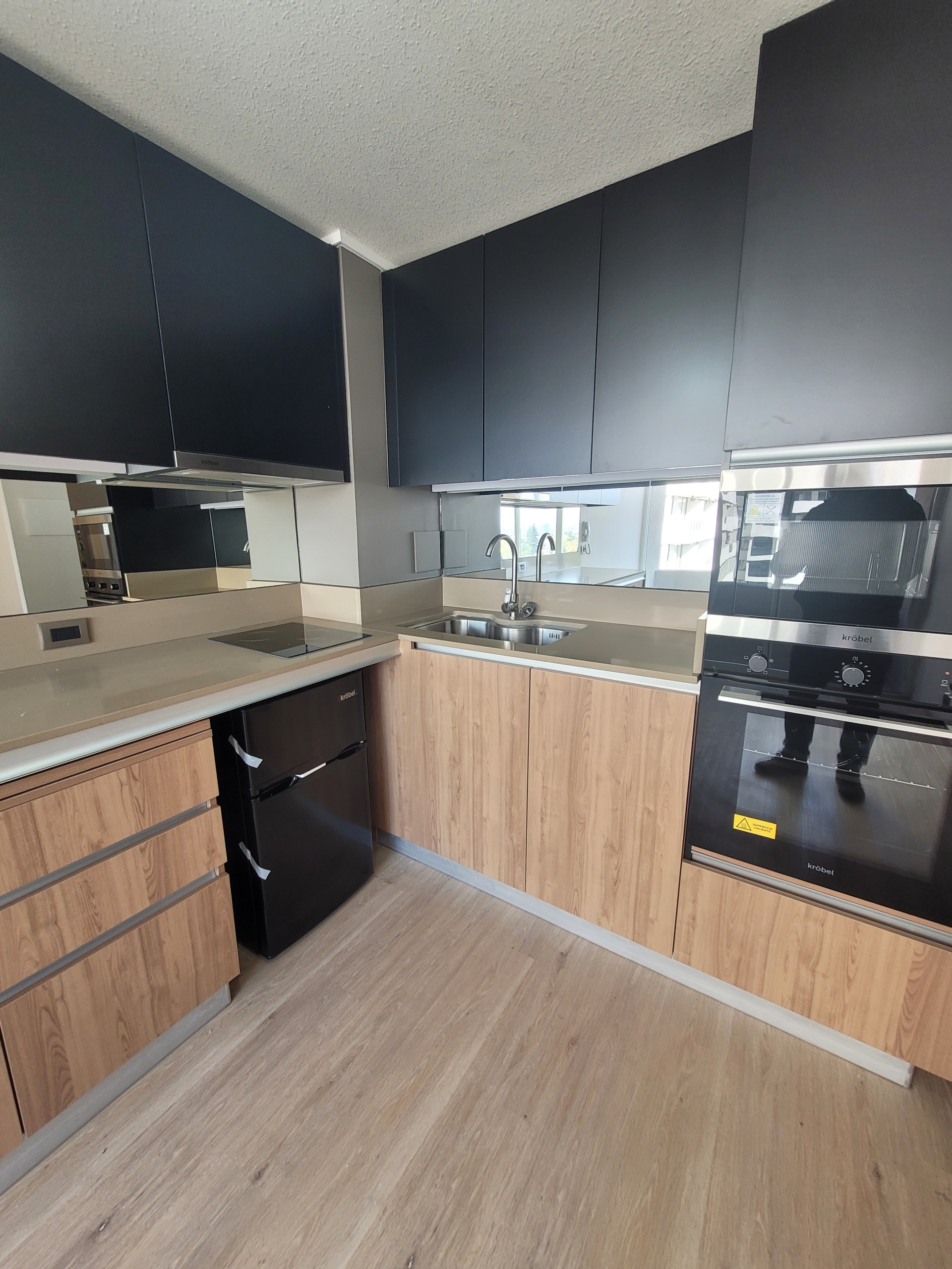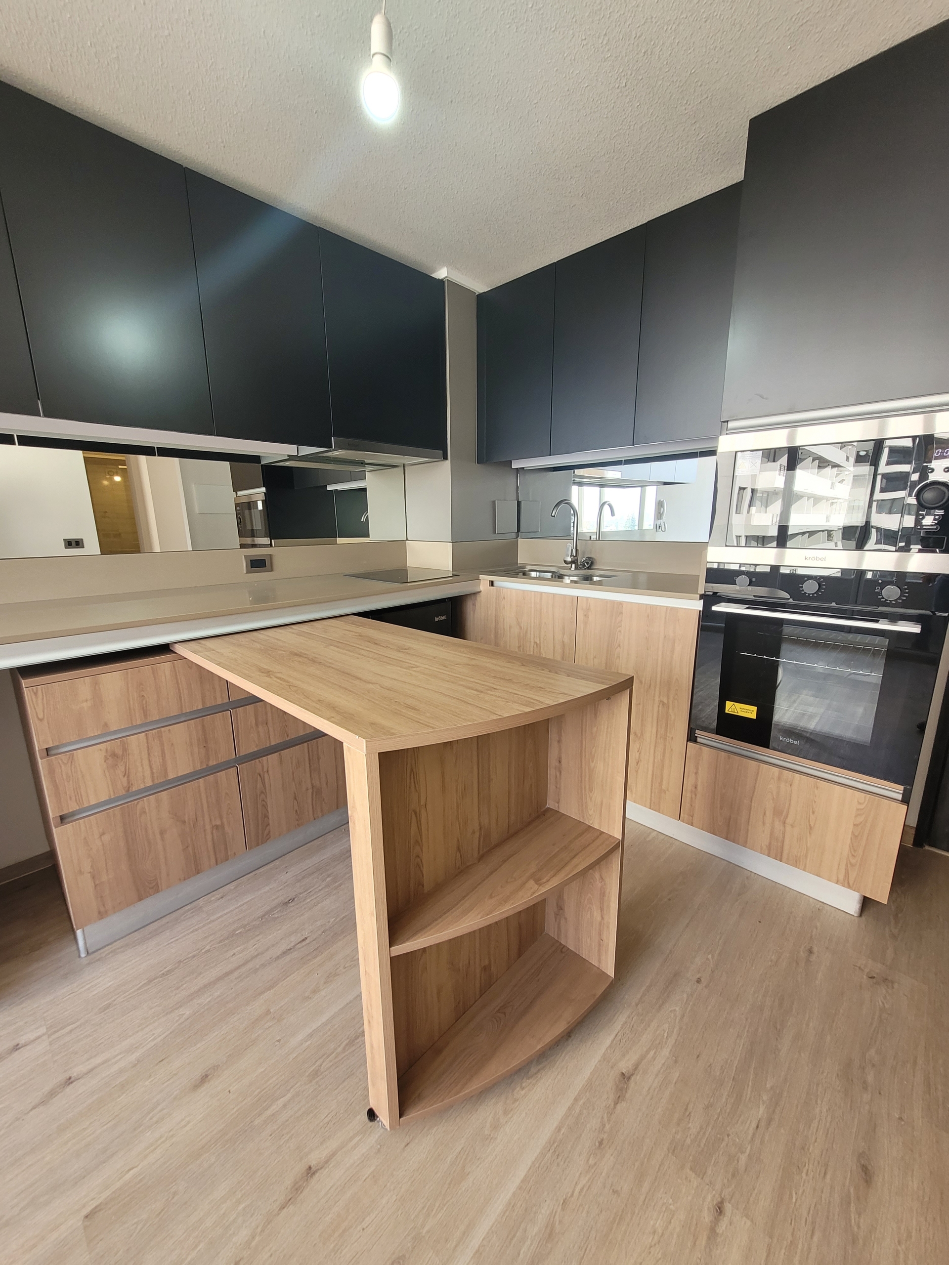 – Cocina americana con encimera eléctrica.-